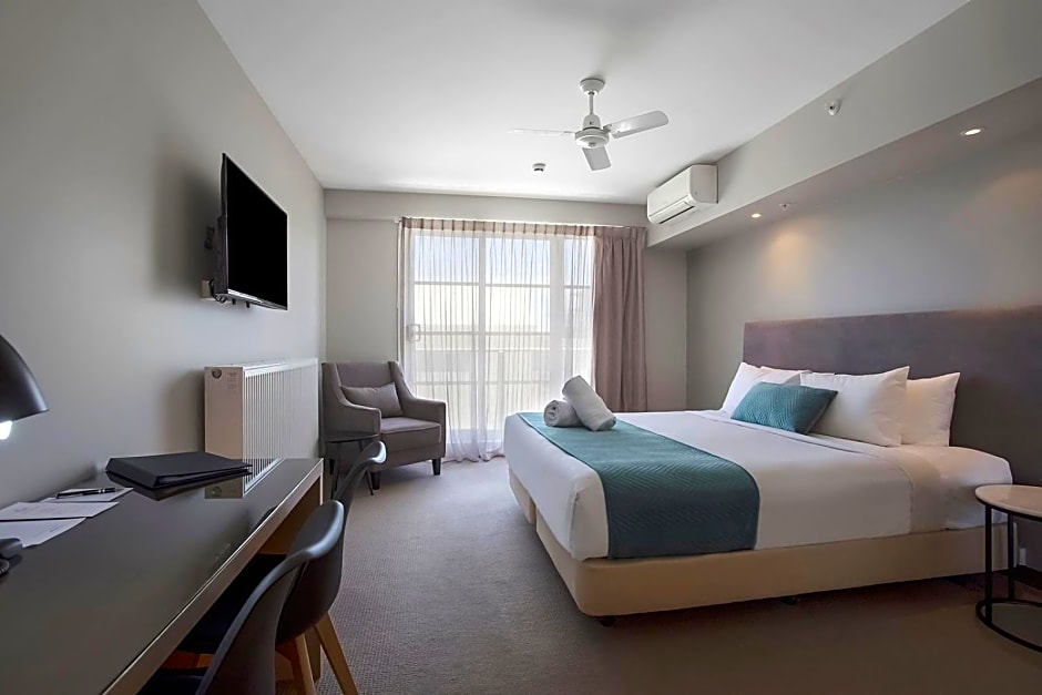Indulge in a Superior room, King bed with en-suite featuring spa bath & separate shower, also featuring a beautifully designed kitchenette. Additional features are private balcony, flat screen TV, Free Wifi internet anywhere in the hotel, work desk, reverse cycle air conditioning & heating, lounge area with a couch. Rates are for 2 people. Extra guests can be accommodated at additional cost on the sofa bed. Our superior Spa Suites are located on Levels 1 to 4 of the hotel and views will depend on the availability of the rooms at the time of booking. Note: All spa and wellness experiences are not included in the room rate and must be pre-booked seperately.